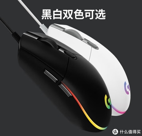 罗技G102游戏鼠标,这款鼠标外观简洁大方,白色版更显清新。尺寸适中,轻量化设计让它仅重约80克,长时间使用也不易疲劳。